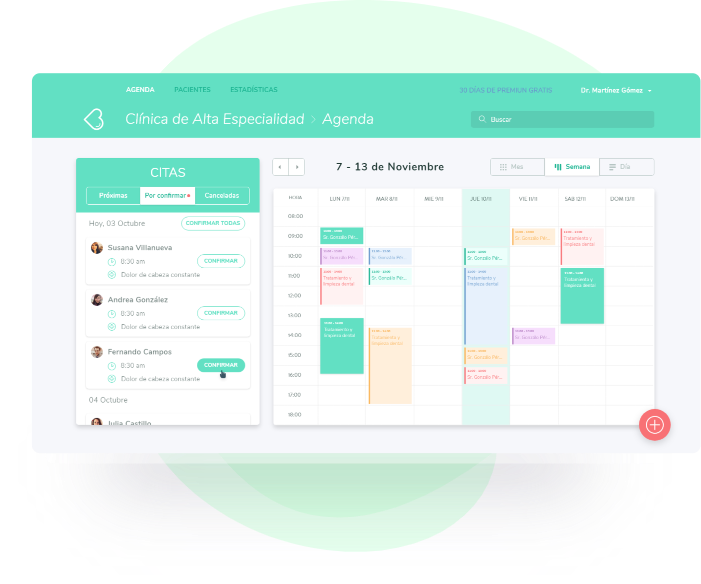 Los pacientes pueden ver tu disponibilidad de horario y agendar una cita. Deja de usar varias herramientas para gestionar tus consultas. Unifica tus procesos.