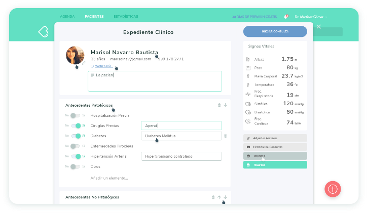 Aumente la productividad de tu clínica, consultorio u hospital con una sencilla pero potente aplicación para administrar aspectos importantes de tu operación como profesional de la salud.